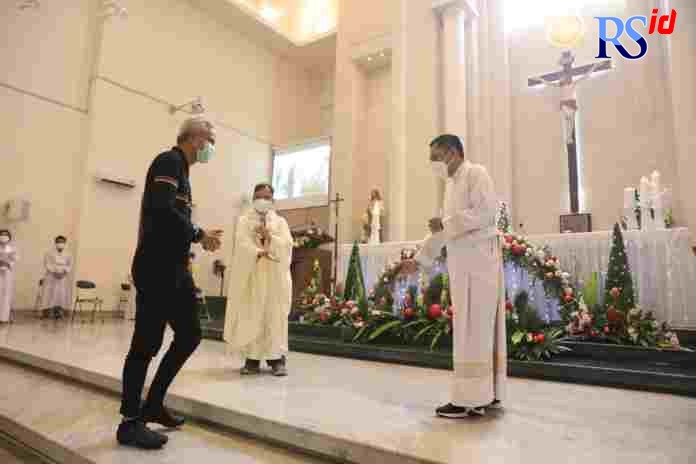 Romo EG Willem Pau Pr yang memimpin Misa Natal di Gereja Santo Franciscus Xaverius Kebon Dalem menyampaikan terima kasih karena Ganjar bersedia mampir, mengajak, dan mengingatkan semua untuk bahagia.