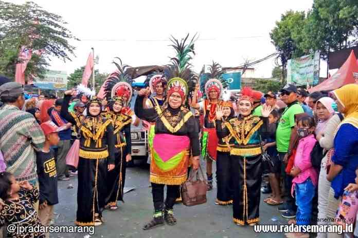 RADARSEMARANG.COM, BATANG – Ada yang menarik dalam karnaval kolosal, menyambut HUT RI ke-74 yang digelar oleh Kecamatan Limpung Kabupaten Batang. Puluhan siswa dari Sekolah Dasar Negeri 1 Limpung mengenakan kostum suku Dayak Kalimantan. Adanya kabar pulau Borneo ini akan mejadi Ibu Kota negara yang baru, menjadi ide dasar dari sekolah tersebut.