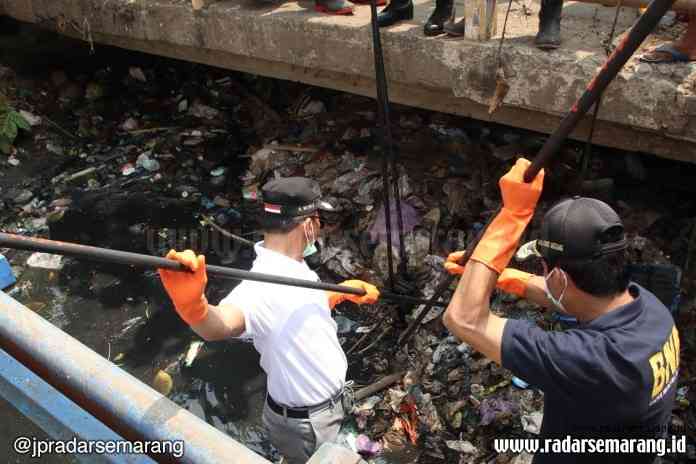 “Sampah di saluran air ini, terutama di bawah jembatan, berpotensi menjadi biangnya banjir di Kota Batang, pasalnya tumpukan sampah menutup dan menyumbat aliran sungai. Bahaya kalau musim penghujan nanti,” seru Bupati Batang Wihaji.