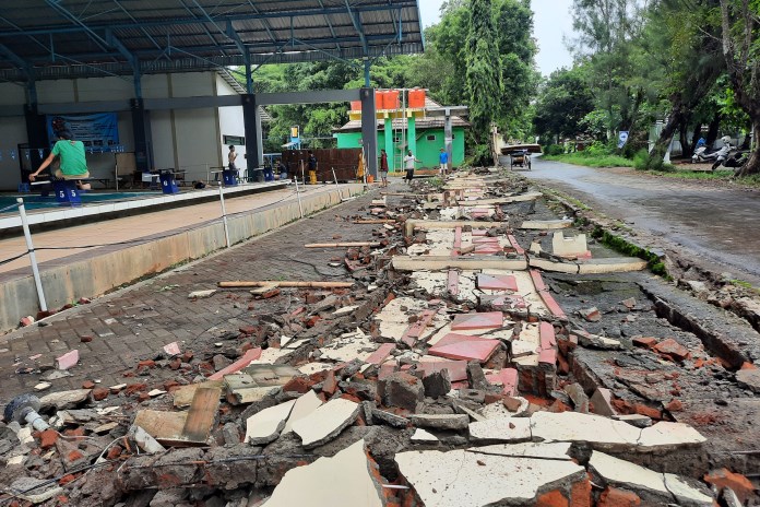 RADARSEMARANG.COM, Batang – Tembok setinggi 2,5 meter di Taman Hiburan Rakyat (THR) Kramat roboh setelah dua hari diguyur hujan. Selain karena faktor cuaca, tembok juga diduga termakan usia. Terlihat, materialnya remuk berantakan.