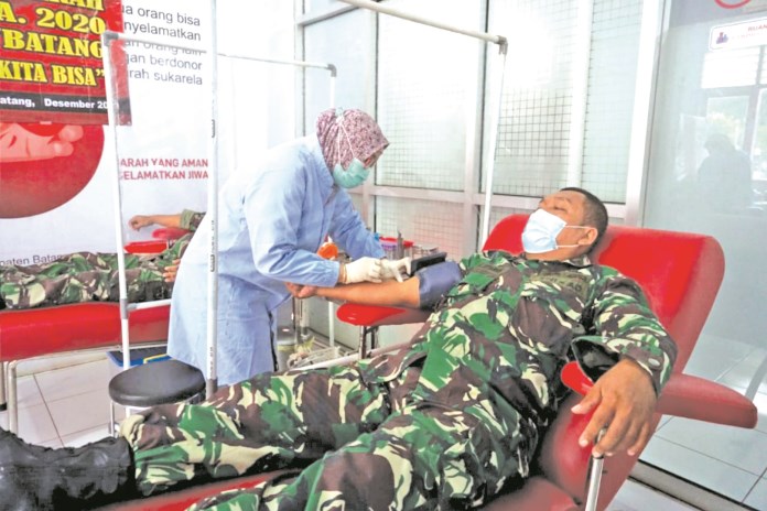 Donor darah dilakukan anggota TNI dengan tetap menerapkan protokol kesehatan. Aksi sosial tersebut dilakukan dalam rangka membantu ketersediaan stok darah PMI Batang. “Kegiatan donor darah merupakan wujud kepedulian TNI AD terhadap permasalahan yang ada di tengah masyarakat, terutama kebutuhan darah yang diperlukan oleh warga masyarakat,” ujar Dandim Batang Letkol Arh Yan Eka Putra.