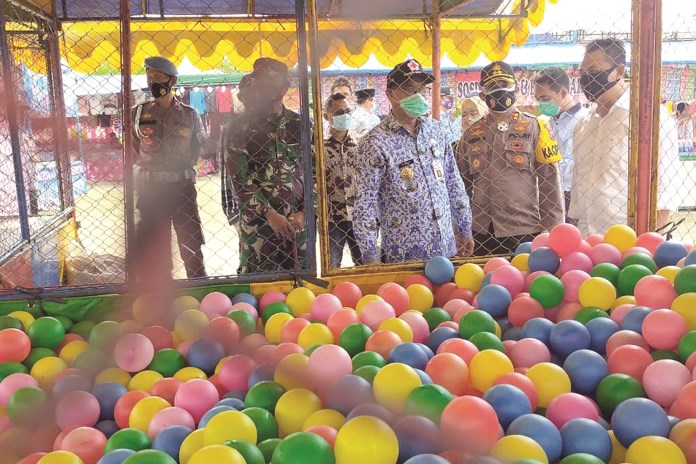 Kapolres Demak AKBP Andhika Bayu Adhittama menjelaskan, protokol kesehatan menjadi kunci utama untuk mencegah penularan korona. “Di tempat hiburan pasar rakyat seperti ini akan kita awasi betul. Kita tempatkan petugas khusus mengawasi jalannya protokol kesehatan,” kata Kapolres didampingi Dandim 0716/Letkol Arh Muh Ufiz.