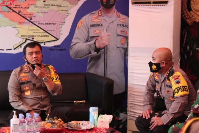 RADARSEMARANG.COM, Demak – Kapolda Jateng, Irjen Pol Ahmad Lutfi melakukan sidak ke posko pengamanan tahun baru di Demak, tepatnya di pos terminal Kota Demak kemarin. Pengecekan posko tersebut dilakukan untuk memastikan kesiapan petugas dalam pengamanan sekaligus pelayanan pada masyarakat saat pergantian tahun.