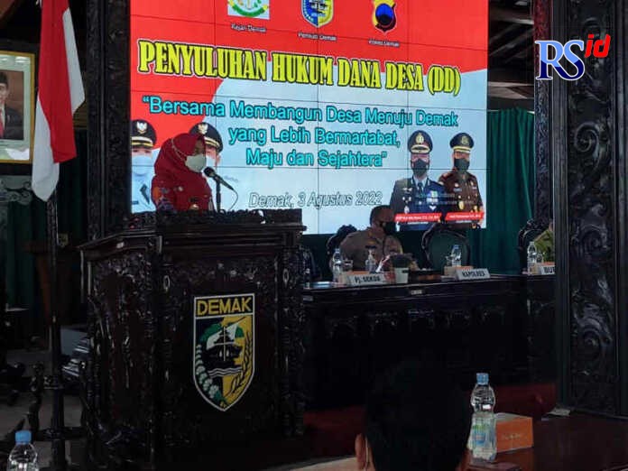 RADARSEMARANG.COM, Demak – Bupati Demak dr Eistianah meminta para kepala desa (kades) agar dapat menggunakan dana desa (DD) sesuai aturan atau regulasi yang ada. “Jangan sampai DD diselewengkan,”kata bupati dihadapan para kades saat mengisi acara penyuluhan DD di Pendopo Pemkab Demak.