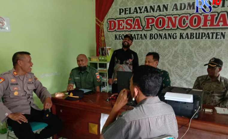 Diantaranya, oleh Babinsa Koramil 02 Bonang Kodim 0716 Demak Serda Sutarno bersama Bhabinkamtibmas Aiptu Agung mendampingi kegiatan monitoring oleh Polres Demak di Desa Poncoharjo, Kecamatan Bonang.