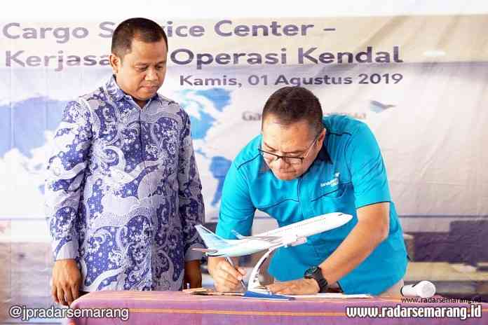 RADARSEMARANG.COM, KENDAL—Maskapai Penerbangan Garuda Indonesia memperkuat dan memperluas jaringan layanan kargo atau pengiriman barang dengan membuka Cargo Sevice Center (CSC) di Kawasan Industri Kendal (KIK). Pembukaan kantor layanan CSC ini bagian dari tuntutan industri logistik dan kebutuhan pengiriman cepat.