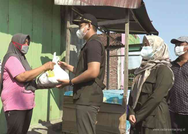 Selain memberikan bantuan sembako. Istri bupati, Wynee Chacha Frederica memborong dagangan warga. (bud/zal)