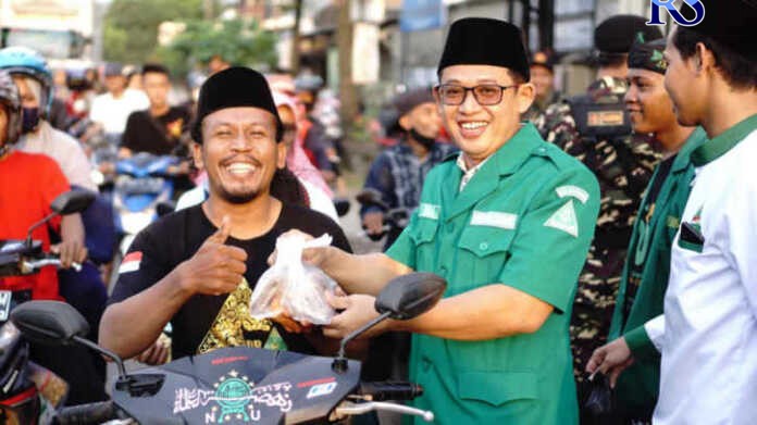 RADARSEMARANG.COM, Kendal — Puluhan pemuda dari Pimpinan Anak Cabang Gerakan Pemuda (PAC GP) Ansor Kaliwungu bagikan kudapan berbuka puasa. Ada sebanyak 2.500 paket takjil dibagikan kepada pengguna jalan di Jalan Kaliwungu Raya.