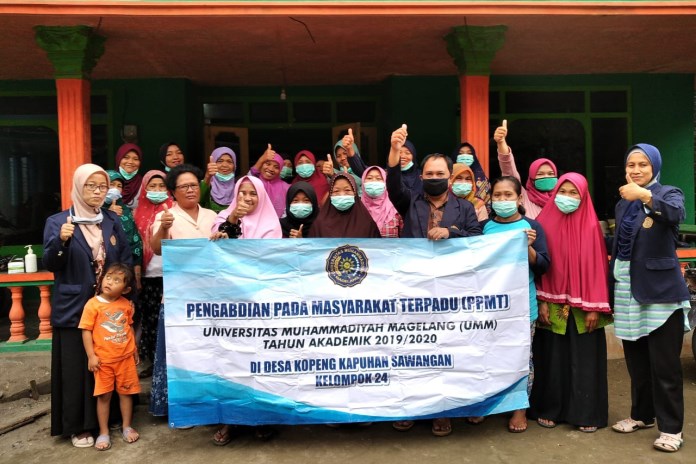 RADARSEMARANG.COM, Mungkid – Program Pemberdayaan Pada Masyarakat Terpadu (PPMT) TA 2019/2020 kelompok 24 Universitas Muhammadiyah Magelang (UNIMMA) memberikan pelatihan keterampilan budidaya jamur di Dusun Kopeng, Desa Kapuhan, Kecamatan Sawangan, Kabupaten Magelang.