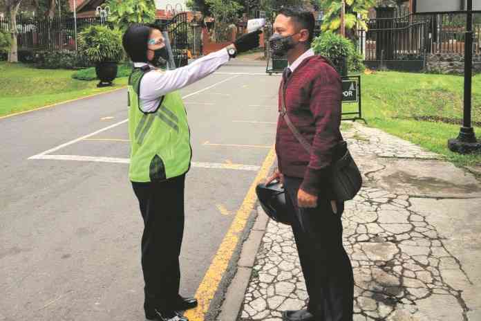 “Mau ke mana Pak,” tanyanya pada setiap tamu yang melewati pos jaga kantor TWC. Gerak-geriknya gesit dan suaranya lantang. Bergegas ia mengambil thermogun untuk memeriksa suhu tubuh tamunya.