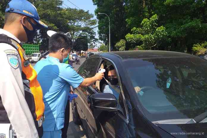 RADARSEMARANG.COM, Magelang – Petugas gabungan melakukan pengetatan dan pengawasan jalur masuk ke Kota Magelang. Dalam operasi petugas mengecek identitas dan pengukuran suhu tubuh kepada pengendara pelat luar Kota Magelang.