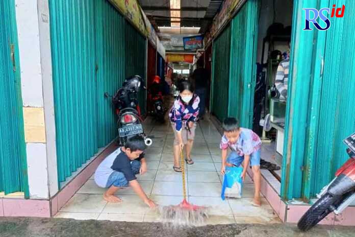 Air merendam sejumlah lapak di dalam bangunan lantai dua Pasar Rejowinangun. Akibatnya, para pedagang mengevakuasi barang dagangannya. “Sebenarnya bukan banjir yang besar. Hanya seperti air masuk atau genangan saja. Air ini berasal dari kebocoran,” jelas Wahid salah satu pedagang celana di lantai dua.