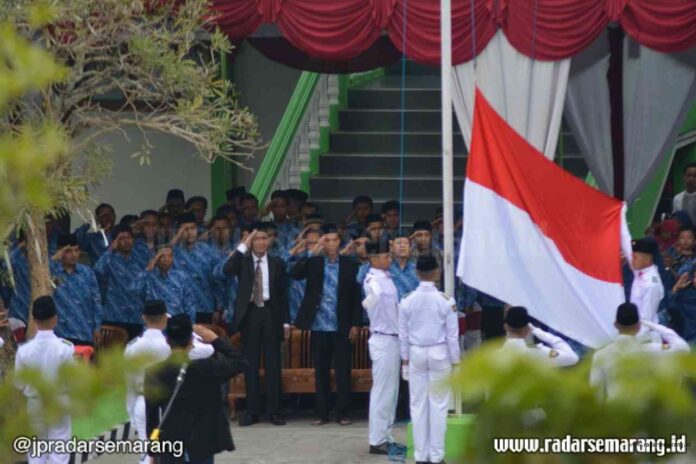 RADARSEMARANG.COM, MUNGKID – Sebanyak 1.500 santri Pondok Pesantren Ihsanul Fikri Mungkid mengikuti upacara peringatakan HUT ke-74 Kemerdekaan Republik Indonesia dengan khidmat Sabtu (17/8/2019). Para guru dan karyawan Yayasan Tarbiyatul Mukmin Pabelan, yang menaungi SMPIT-SMAIT-SMKIT dan Ponpes Ihsanul Fikri Mungkid, juga mengikuti upacara tersebut.