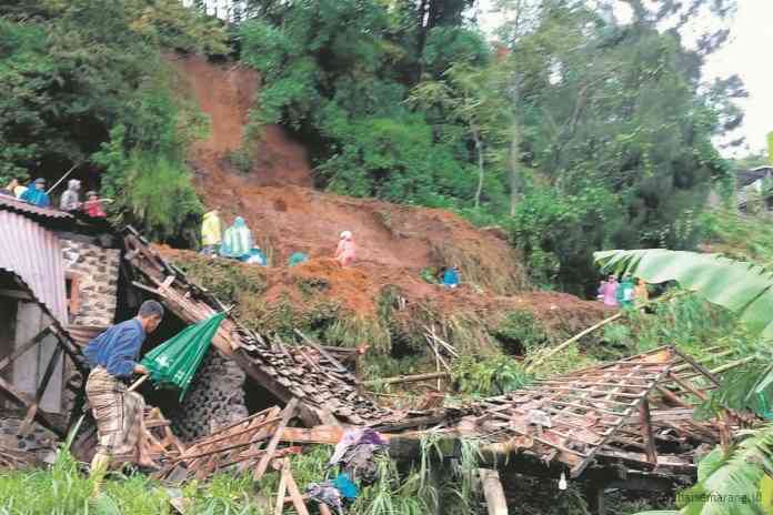 RADARSEMARANG.COM, Mungkid – Tiga rumah dan satu kandang ternak di Dusun Prampelan, Desa Adipuro, Kaliangkrik rusak parah. Selain itu, empat orang mengalami luka parah. Peristiwa itu terjadi akibat tebing setinggi 25 meter dan lebar 10 meter longsor Selasa (26/1/2021).