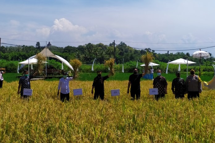 RADARSEMARANG.COM, Mungkid – Menteri Pertanian Syahrul Yasin Limpo terpesona dengan konsep wisata bernuansa sawah di Svarga Bumi, Borobudur, Kabupaten Magelang. Sabtu (6/3/2021) jam 10.00 ia didampingi Sekda Kabupaten Magelang dan pejabat lain membuka acara memanen padi di tempat wisata tersebut.