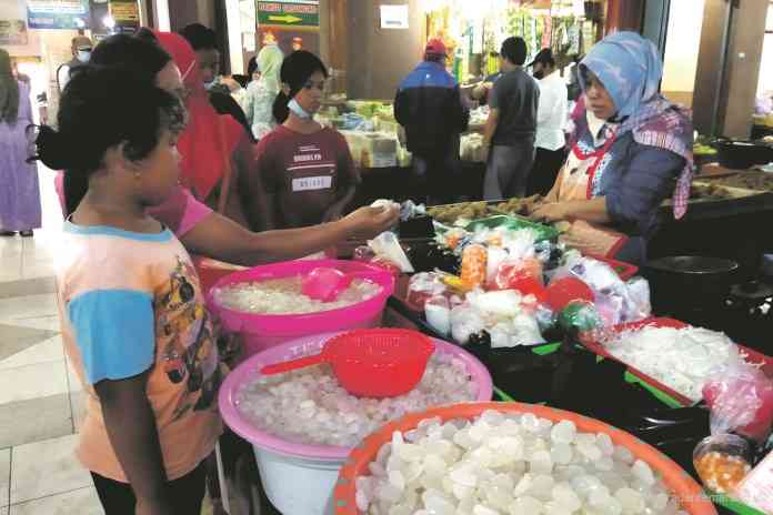 RADARSEMARANG.COM, Mungkid – Suryani tengah sibuk meladeni pembeli ketika azan duhur baru berkumandang, Minggu (18/4/2021). Pedagang kolang-kaling di Pasar Muntilan itu memang sedang ketiban berkah Ramadan. Penjualannya naik cukup drastis.