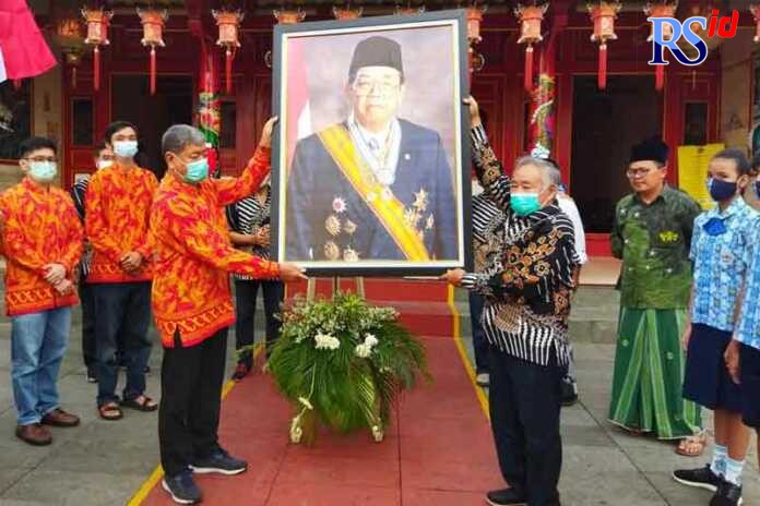 Sekretaris Yayasan Tempat Ibadah Tri Dharma (TITD) Hok An Kiong Hings Hartanto berterimakasih atas pemberian foto Gus Dur bagi Kelenteng Hok An Kiong.