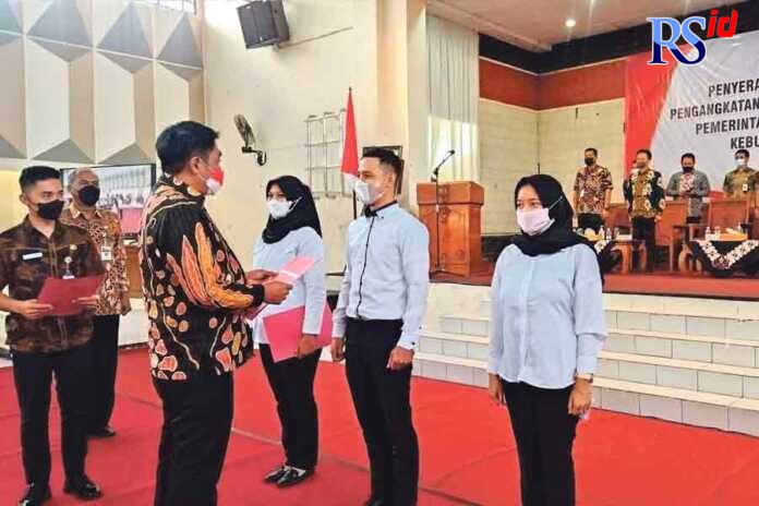 RADARSEMARANG.COM, Mungkid – Alvira Oktaviani, 24, menjadi satu dari 447 calon pegawai negeri sipil (CPNS) 2021 yang menerima SK dari Bupati Magelang di GOR Gemilang Setda Kabupaten Magelang, Kamis (31/3). Dia diterima di RS Bukit Menoreh Salaman sebagai terapis gigi dan mulut.