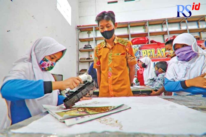 RADARSEMARANG.COM, Pekalongan – Mengenakan masker dan jaga jarak, puluhan siswa Sekolah Dasar (SD) di Kota Pekalongan dengan ceria berlatih membatik. Ada yang mencanting di kain dengan lilin mencolet warna di lembaran kain, maupun belajar mengecap lilin di bentangan kain secara teliti.
