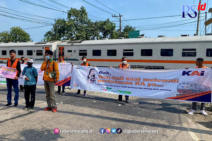 RADARSEMARANG.COM, Pekalongan –Pengendara sering bandel, dengan menerobos perlintasan kereta, bahkan sering melawan arah di perlintasan kereta. PT Kereta Api Indonesia (KAI) bersama Railfans (komunitas pecinta kereta api) menggelar Sosialisasi Keselamatan Perlintasan Sebidang di Kota Pekalongan, Rabu (22/3).