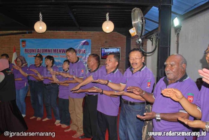 RADARSEMARANG.COM, Salatiga – sedikitnya 70an mantan anggota Resimen Mahasiswa (Menwa) Batalyon 914 ”Ganesha” UKSW Salatiga berkumpul. Mereka terdiri dari angkatan/yudha pertama (1979) hingga yudha 42 (2019). Kegiatan digelar di RM Banyumili, Desa Gedangan, Kecamatan Tuntang, Kabupaten Semarang, Minggu (29/12/2019).