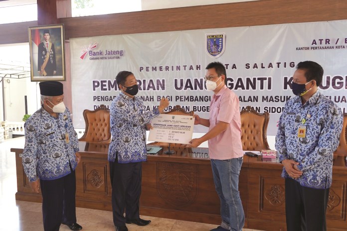 Uang ganti rugi langsung ditransfer melalui rekening Bank Jateng usai penandatanganan pelepasan hak. Hadir dalam kesempatan tersebut Kepala BPN Salatiga Sumarma, kepala Bappeda, Plt DPUPR, Kadinas Perkim, Asisten II, serta pemilik hak tanah sebanyak 17 bidang.