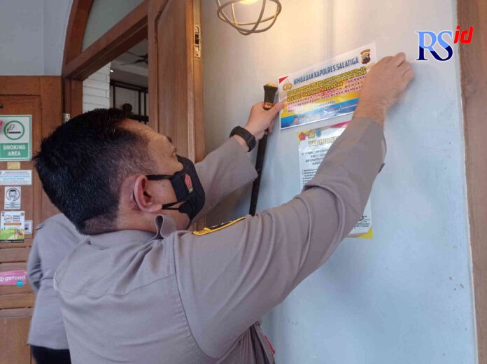 RADARSEMARANG.COM, Salatiga – Polres Salatiga memasang sekitar 500 stiker berisi imbauan protokol kesehatan (prokes) untuk mencegah penyebaran virus korona.