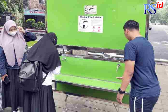 Saat peresmian beberapa waktu lalu, tempat tandon stenlis air siap minum, di Lapangan Pancasila menggunakan teknologi Chlorine Dioxide yang aman dikonsumsi manusia dan juga bisa digunakan dalam bidang kesehatan serta pertanian dan perikanan. (sas/fth)