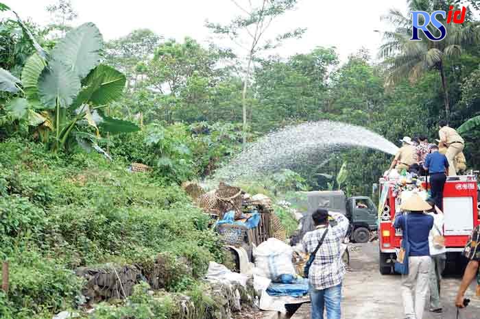 Usai apel Wakil Wali Kota Dr. Muh Haris menyerahkan bantuan komposter kepada perwakilan bank sampah dari empat kecamatan. Wakil wali kota di dampingi camat argomulyo menaiki truk pemadam kebakaran untuk menuangkan ekoenzim. Selanjutnya dilanjutkan penyemprotan ke area TPA Ngronggo. (sas/fth)