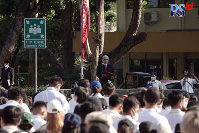Berperan sebagai inspektur upacara, Rektor UKSW Neil Semuel Rupidara Ph.D. Dalam pidatonya, dia mengajak seluruh civitas UKSW untuk merenungkan tema Kemerdekaan Indonesia tahun ini, Pulih Lebih Cepat dan Bangkit Lebih Kuat.