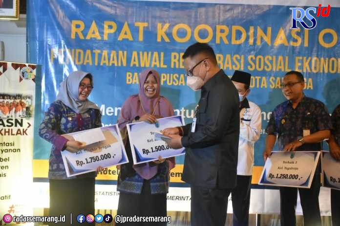 RADARSEMARANG.COM, Salatiga – Kelurahan Tingkir Tengah dinobatkan menjadi Wilayah Kelurahan Cantik (Cinta Statistik) dan berhasil meraih Regsosek Award Tahun 2022 dari Penjabat (Pj) Wali Kota Salatiga.