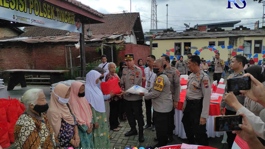 Dalam tahap awal, 100 lansia diberikan bantuan berupa paket sembako dan nutrisi tambahan. Paket Bantuan Asistensi Rehabilitasi Sosial (Atensi) dibagikan di Joglo Presisi Polsek Tingkir, Senin (9/1/2023).