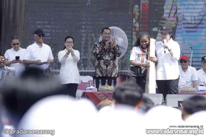 RADARSEMARANG.COM, SEMARANG-Menteri Koordinator (Menko) Pembangunan Manusia dan Kebudayaan RI, Puan Maharani meminta masyarakat Kota Semarang untuk selalu menjaga Pancasila. Selain itu, tetap bergotong royong agar nantinya bisa menjadi manusia berguna.
