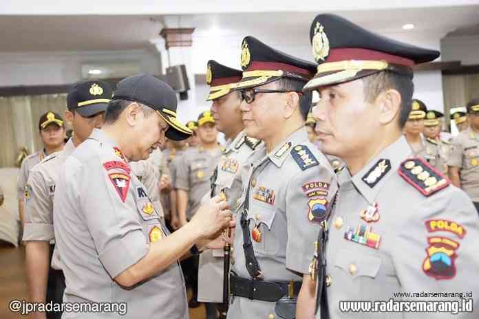RADARSEMARANG.COM, SEMARANG-Polda Jateng kembali melakukan rotasi atau mutasi jabatan. Kali ini, lima pejabat utama (PJU) dan delapan Kapolres dirotasi. Kelima PJU adalah Karo SDM Polda Jateng dari Kombes Pol Agoes Soejadi Soepraptono, digantikan oleh Kombes Pol Iriansyah. Kemudian Kabidpropam Polda Jateng, Kombes Pol Jamaluddin Farti, digantikan oleh Kombes Pol Mukiya. Kabidhumas Polda Jateng, Kombes Pol Agus Triatmaja, diganti Kombes Pol Iskandar Fitriana Sutisna. Kepala Yanma Polda Jateng, AKBP Valentinus Virasandy Asmoro diganti AKBP Umi Maryati. Sedangkan satunya Kabidlabfor Polda Jateng, Kombes yang sebelumnya kosong kini telah diisi Kombes Pol Dr Nursamran Subandi.