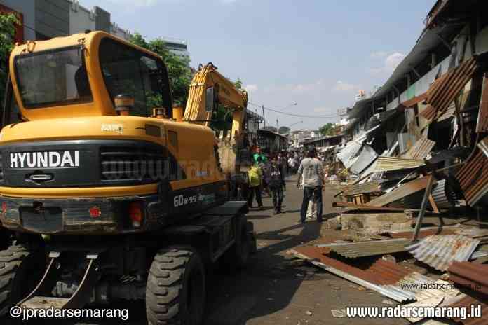 Pembongkaran dilakukan karena para pedagang tidak mengindahkan peringatan yang sudah dilayangkan oleh Dinas Perdagangan Kota Semarang.