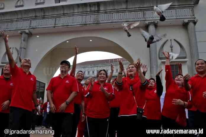RADARSEMARANG.COM, Semarang – Rangkaian peringatan Hari Ulang Tahun (HUT) ke-473 Kota Semarang resmi dibuka Wali kota Semarang Hendrar Prihadi, Kamis (12/3/2020) pagi. Kegiatan diawali dengan senam bersama yang diikuti ribuan ASN dan non ASN di lingkungan Pemerintah Kota Semarang di sepanjang Jalan Pemuda. Setelah melakukan senam, pembukaan HUT ditandai dengan pelepasan 473 ekor merpati, pembagian doorprize, pertandingan futsal antara muspida yang dipimpin oleh wali kota melawan jajaran wartawan, lomba senam denok, dan penampilan cheerleaders dari berbagai sekolah.