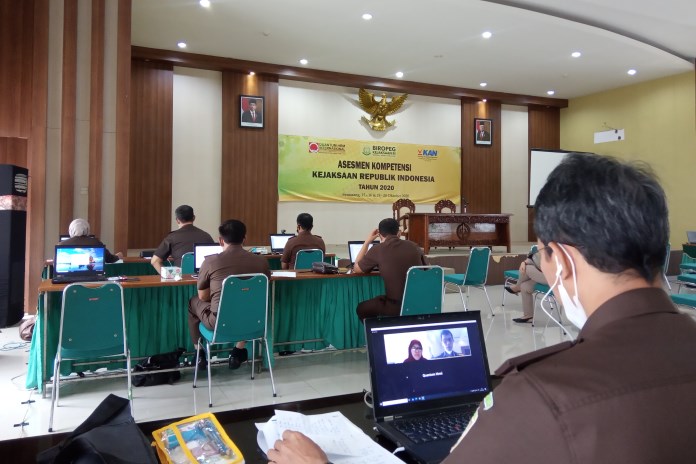 RADARSEMARANG.COM, Semarang – Aparatur Sipil Negara (ASN) pejabat eselon III dan IV dari lingkungan Kejaksaan Tinggi (Kejati) Jateng mengikuti asesmen kompetensi yang dilaksanakan serempak oleh Kejaksaan Agung (Kejagung) RI. Proses asesmen dilakukan secara bertahap mengingat masih dalam masa pandemi.