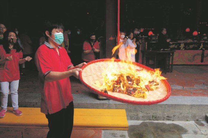 RADARSEMARANG.COM, Semarang – Menyambut perayaan Imlek 2572 pada 12 Februari mendatang, sejumlah umat Tionghoa melakukan ritual Toa Pe Kong Naik. Ritual membakar kertas untuk mengantarkan dewa-dewi naik ke surga membawa catatan yang dilakukan umat Thionghoa selama setahun. Seperti yang terlihat di Klenteng Tay Kak Sie kemarin.