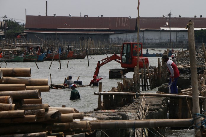 RADARSEMARANG.COM, Semarang – Tanggul pemecah gelombang sepanjang 200 meter di Tambaklorok kembali dibangun oleh Dinas Pekerjaan Umum (DPU) Kota Semarang, Badan Penanggulangan Bencana Daerah (BPBD) Kota Semarang, Balai Besar Wilayah Sungai (BBWS) Pemali Juana. Target pembangunan selesai akhir Maret 2021 ini.