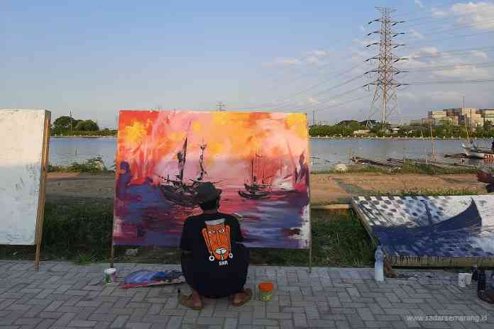 Dalam kegiatan tersebut, panitia menggandeng Dewan Kesenian Semarang. Tiga seniman berdiri menggenggam kuas di depan kanvas berukuran 1X1 meter. Heriwanto, seniman yang juga guru seni lukis di SMP Negeri 31 Semarang asyik memegang palet dan mewarnai lukisan realisnya. Pria bertopi hitam itu menggambar suasana pesisir dengan nelayan di dalamnya.