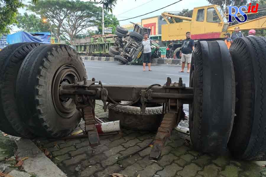 Truk nahas tersebut belum berhenti. Truk baru berhenti setelah terguling. Nahasnya, saat terguling itu, bagian depan truk membentur mobil Toyota Calya yang melaju dari arah yang sama di sisi kanan. “Pengemudi mobil Ayla meninggal. Sedangkan mobil Calya yang terkena benturan sampai terpental melompati median jalan,” jelasnya.