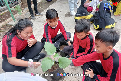 “Tadi yang ditanam cabai dulu, lalu kangkung. Dikasih biji sawi untuk disemai. Anak-anak sangat antusias. Ini sangat bermanfaat agar mereka menanam di rumah dan di sekolah,” kata ibu dari Zio, siswa kelas 1 A ini.