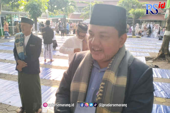 RADARSEMARANG.COM, Semarang – Salat Idul Fitri digelar di Rumah Sakit Muhammadiyah Roemani diikuti oleh ratusan jamaah dari berbagai daerah, Jumat (21/4). Bertepatan dengan Hari Kartini, imam dan khutbah salat, H AM Jumai menyampaikan beberapa pesan.