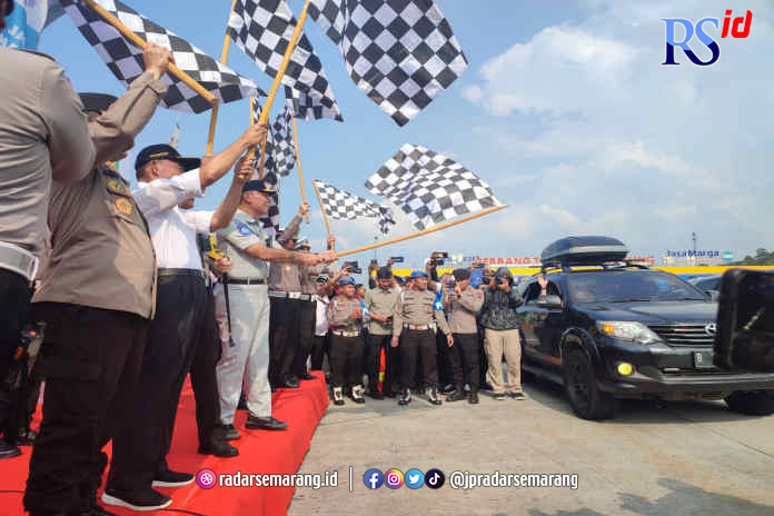 RADARSEMARANG.COM, Semarang – Menteri Koordinator Bidang Pembangunan Manusia dan Kebudayaan (PMK) Muhadjir Effendy melepas skema one way arus balik di Gerbang Tol Kalikangkung, Semarang, Senin (23/4). Rekayasa lalu lintas pada momen lebaran ini dimulai dari KM 414 Gerbang Tol Kalikangkung sampai dengan KM 72 Gerbang Tol Cikampek Utama.