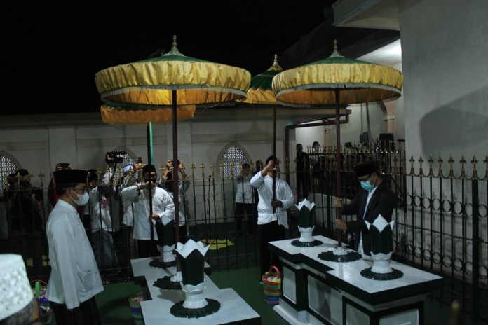Sebelum acara Boyong Menoreh terlebih dahulu diawali dengan bacaan tahlil untuk para arwah para Bupati Temanggung yang sudah meninggal dunia. Bacaan tahlil dipimpin KH Gus Mahfur Nasokha diikuti para kepala desa se-Kecamatan Parakan. (tbh/lis/bas)