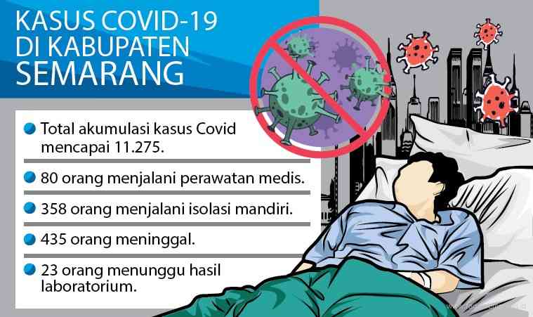 Sementara itu Kepala Dinas Kesehatan Kabupaten Semarang Ani Rahardjo menyatakan, jumlah warga terpapar korona hingga Rabu (2/6/2021) mencapai 11.275 kasus. Sebanyak 80 orang tengah menjalani perawatan medis. Kemudian, 358 orang lainnya menjalani isolasi mandiri. Sementara yang meninggal akibat Covid-19 ada 435 orang.