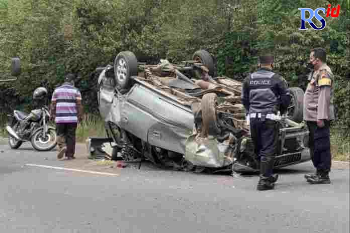 RADARSEMARANG.COM, Bawen – Sebuah mobil kijang dengan nomor polisi H 9436 VB mengalami kecelakaan tunggal di kawasan Banaran, Minggu (5/9/2021). Mobil yang dikendarai oleh Mahasinul Wahib, 55, warga Krajan, Kecamatan Tengaran, itu mengalami pecah ban hingga lepas kendali dan terbalik.