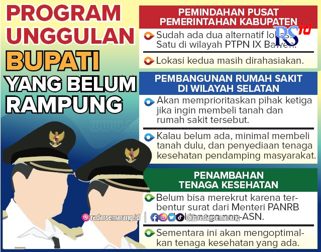Bupati Semarang Ngesti Nugraha menjelaskan, ketiga program tersebut yakni pemindahan pusat pemerintahan kabupaten, pembangunan rumah sakit di wilayah Kabupaten Semarang bagian selatan, dan penyediaan tenaga kesehatan pendamping masyarakat.