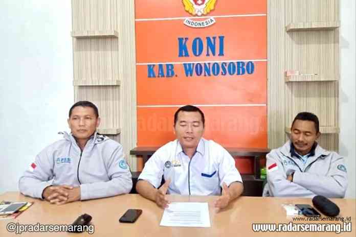 KONPRES : Ketua Askab PSSI Wonosobo Abdul Arif (tengah) didampingi Ketua Panitia Praliga Rifki Hanif (kiri) dan Ketua Panitia Zona II Muhaimin Bimakhtiar saat konferensi pers di kantor KONI Wonosobo.(Sigit Rahmanto/Jawa Pos Radar Kedu)