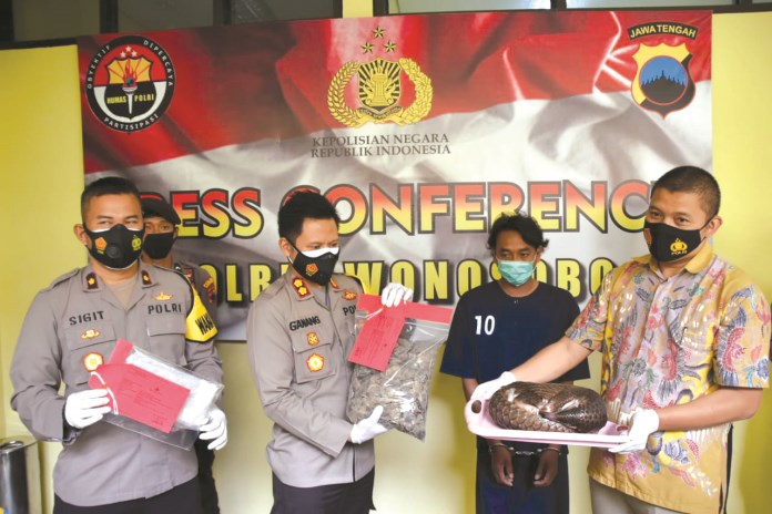 Kapolres Wonosobo AKBP Ganang Nugroho Widhi mengatakan, pelaku berinisial AR, warga Desa Rejosari, Kecamatan Kepil, Wonosobo ditangkap Selasa (26/1/2021) sekitar pukul 12.00 siang di area SPBU Mekar Abadi Desa Pecekelan, Kecamatan Sapuran. “Berawal dari laporan warga, kami menangkap pelaku yang kedapatan membawa satu ekor trenggiling dalam keadaan mati dan satu kantong plastik yang berisi sisik trenggiling,” kata Ganang di Mapolres Wonosobo.